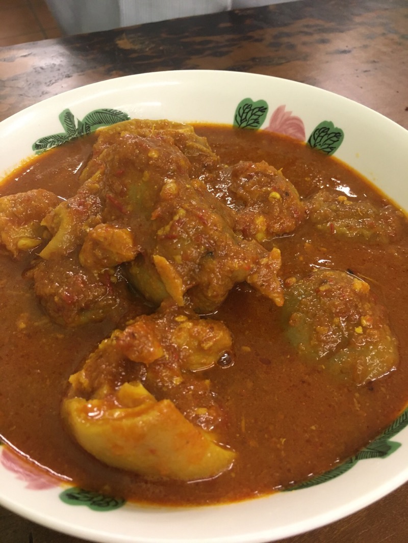 僕のオリジナル料理と出してくれたのが、この豚足のサンバルアサム煮込み。ホテルじゃないので豚肉バンバン!酸味と辛味、ハーブの芳しい逸品で、ごはんまで出してもらいました。
