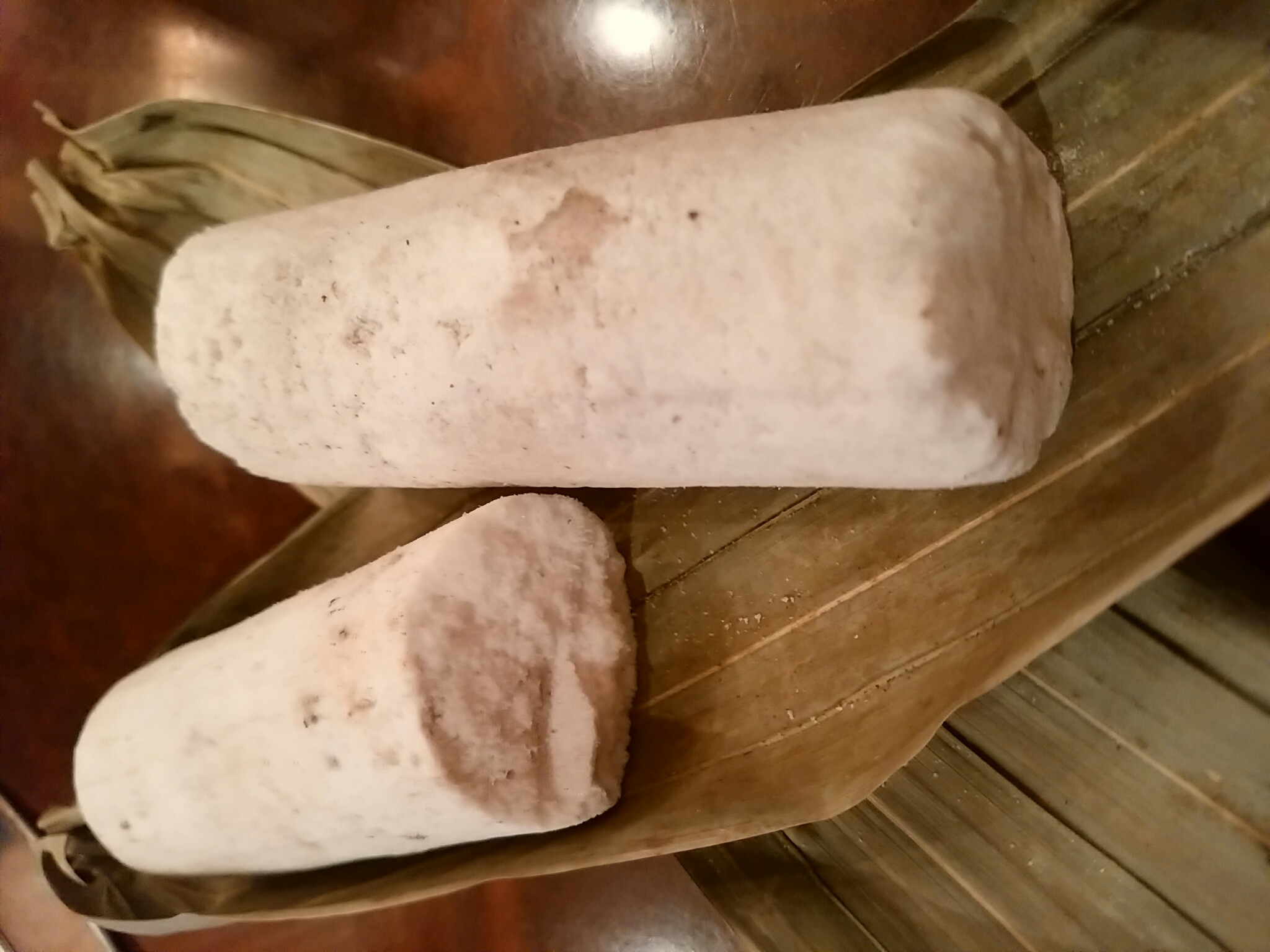 長さ20センチほどの円柱形の固まりとなり、丁寧に葉っぱでぐるぐる巻きにしてありました。