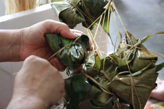 その昔、楚の愛国者だった政治家で詩人の屈原が入水自殺した後、屈原を慕う民衆が弔いのため、魚が屈原の亡骸をつつかないよう、笹の葉で包んだ米の飯を川に投げ入れたのが起源なのだそうです。