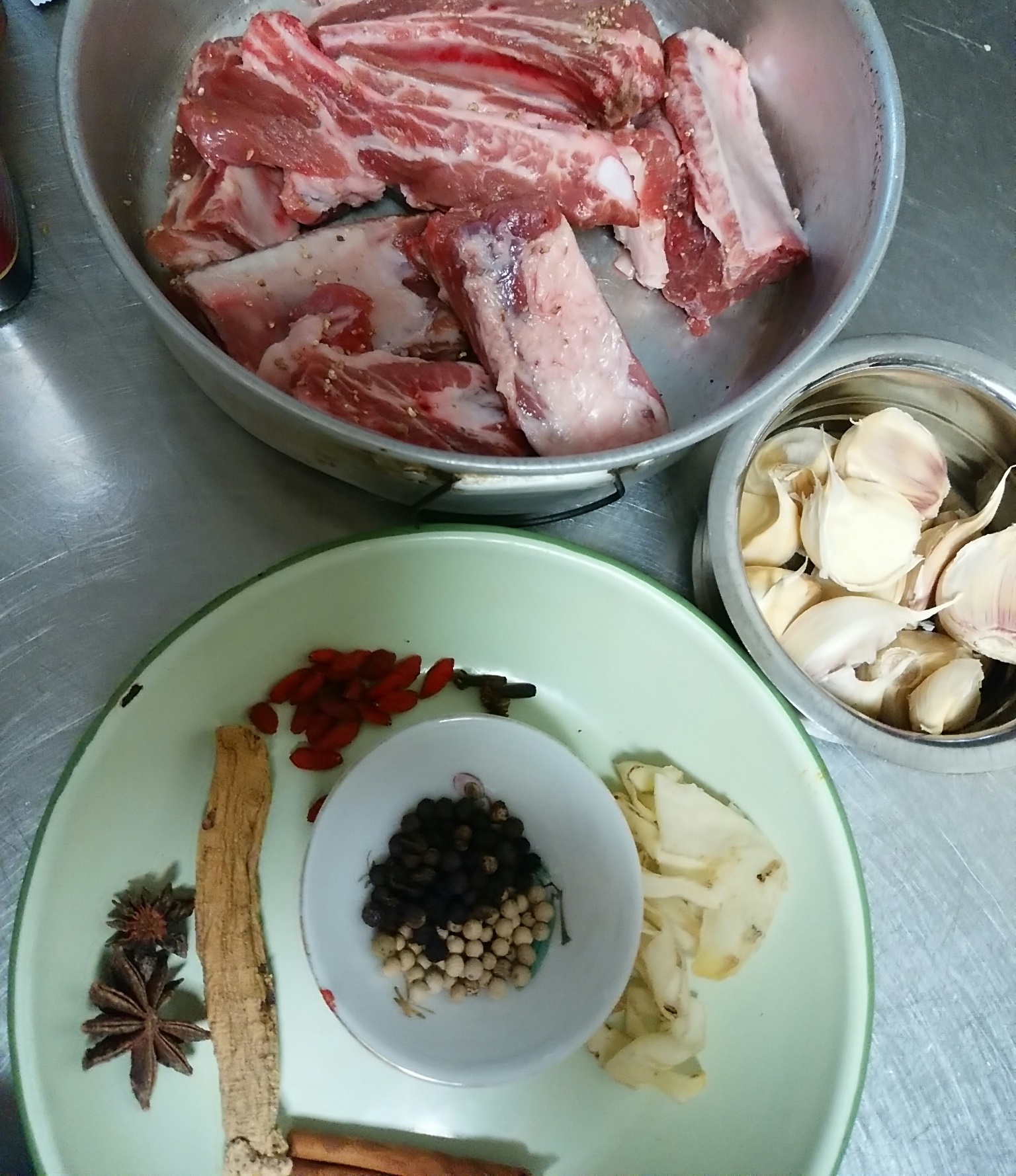 普通家で作るバクテーと言えば、シンガポールやマレーシアで売っているバクテーの素を使い、水とスペアリブとにんにくを入れてちゃちゃっと煮込んでしまえば出来上がりの簡単なレシピと思っていましたが、せっかく教えていただくには一から作りたいとリクエスト。
