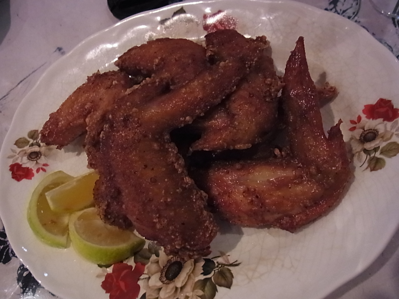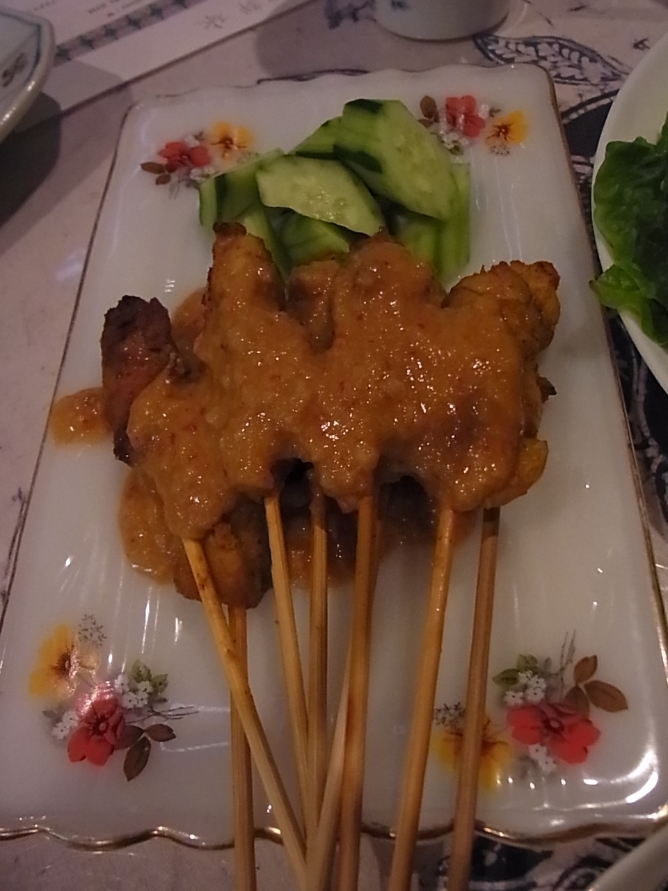 そしてビールといえば、これが無くては始まらない定番料理、ブラチャンで風味をつけた鶏の唐揚げブラチャンチキンとサテー。