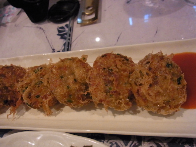マレーシアではスープに浸していただく事もあります。スパイスの香りがふんわり立ち込めるコロッケでした。と、ここまでが前菜ですが、これ以外に写真を撮り忘れた干し栗とシイタケの醤油煮込みという香港料理もありました。