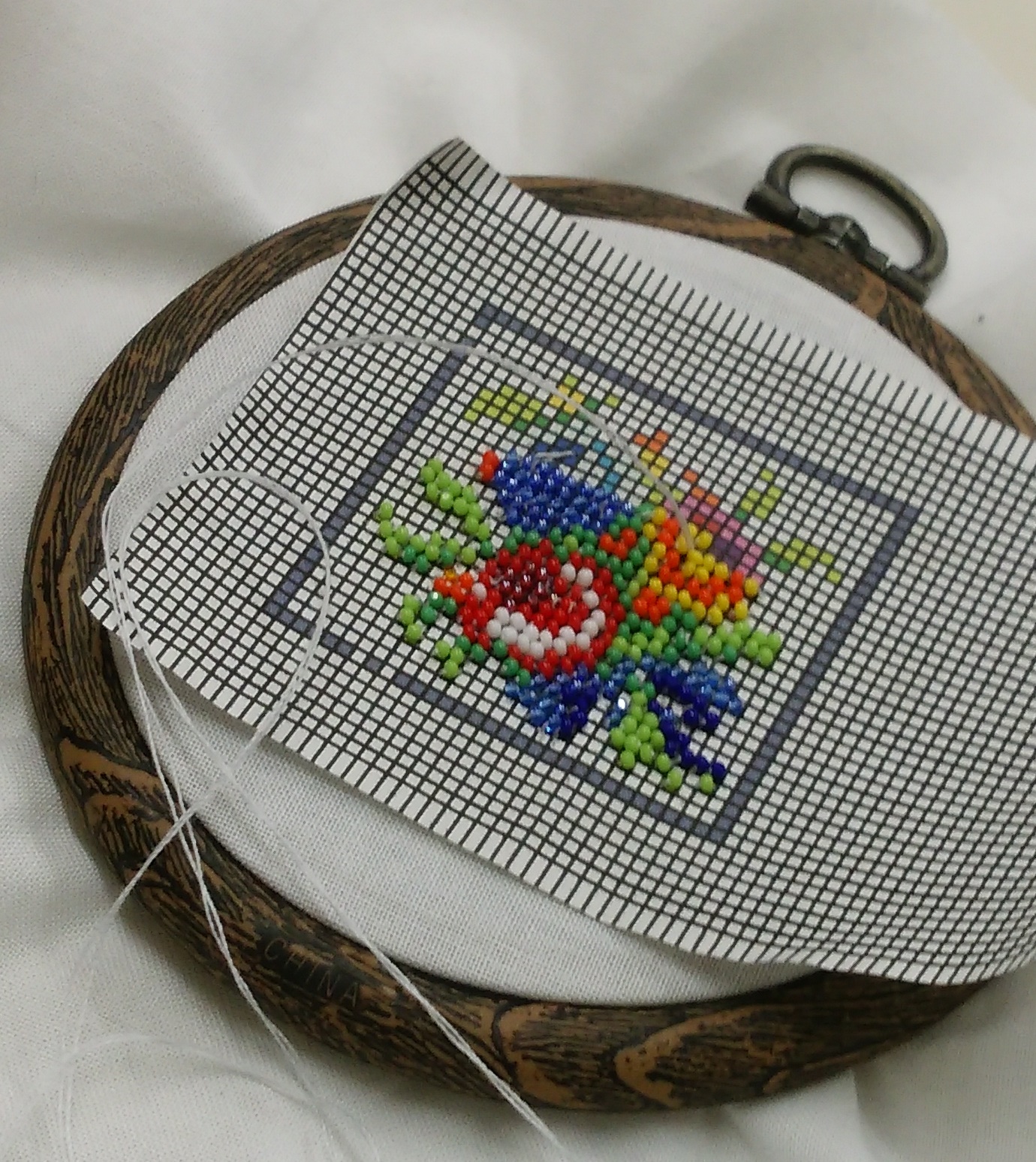 Chieは小さな額に入れられる風水金魚のモチーフでも刺繍しようか??色々思案中ですが、小物からサンダルの大作まで、出来上がった時の喜びはひとしおだと思います。