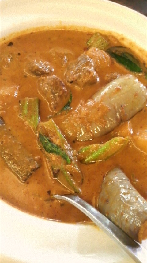 ここまでするなら肉を食べちゃえばいいじゃない!?と少し笑えてきます。そしてこちらはマスタードシードとナスがたっぷり入ったニョニャ風ベジタリアンカリー。