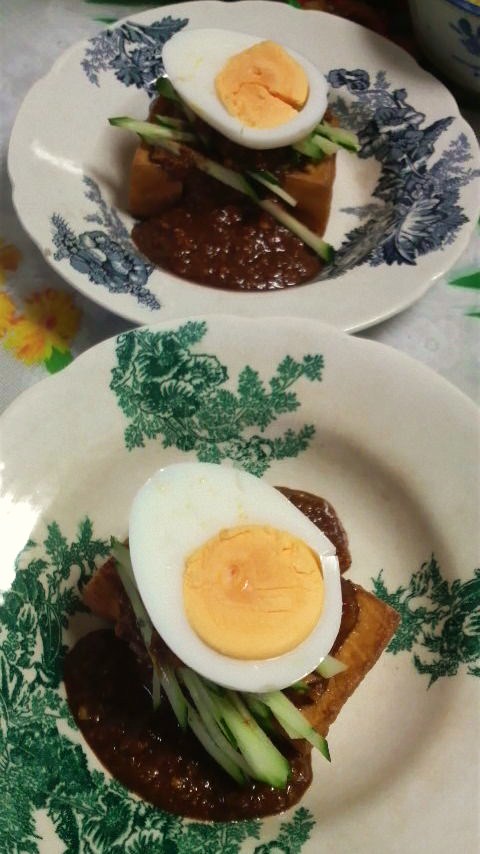厚揚げに甘くてスパイシーなピーナッツソースをかけていただく料理ですが、このピーナッツソースも手作り。タマリンド(アッサム)とピーナッツさえあれば複雑な味からは想像もできないほど、以外と簡単に出来てしまうことにビックリでした。