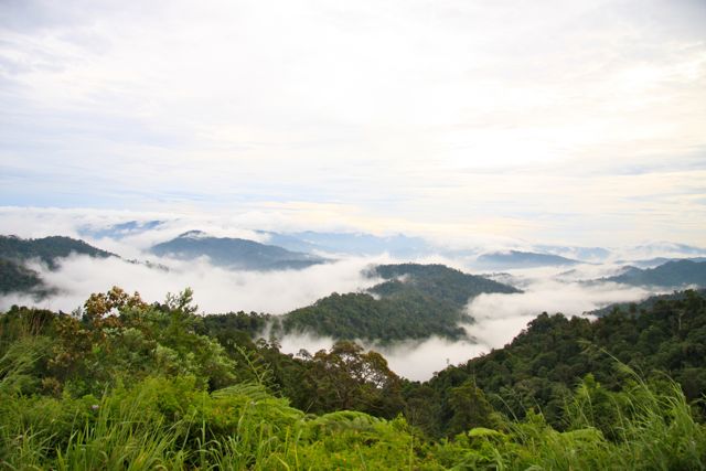 途中に結構標高の高い山があり、山頂付近はキャメロンハイランドのように涼しいです。峠の休憩所からは国境のむこうのタイが望めます。早朝だったので、半袖では震えるほど寒かったです。