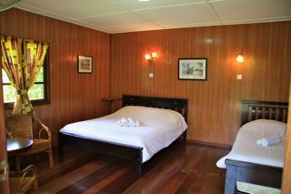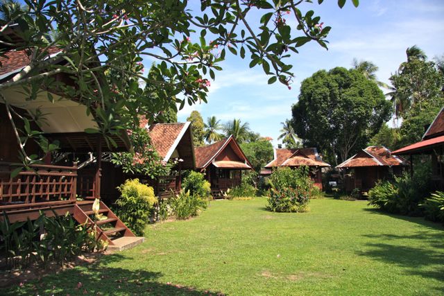 宿泊客用にわずか6棟のシャレーが並んでいるだけですが、庭の手入れも行き届いているし、客室もシンプルだけど、欧米のスタンダードで気配りされているため、水回りなども快適です。ベッドシーツもこういうところにありがちな安物ではありません。