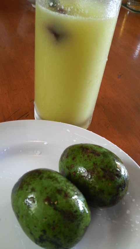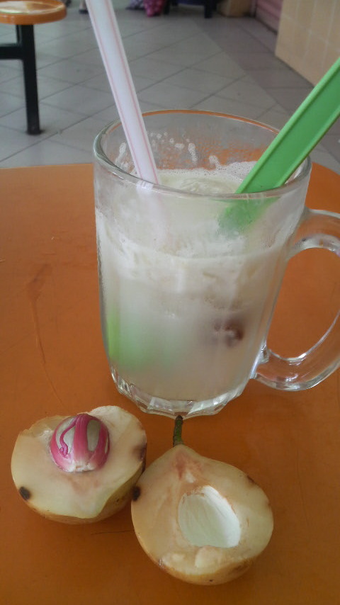 「ビタミンCが半端なく多く、食物繊維も豊富、血糖値も下げ抗酸化作用もある?など~体に良いことづくめ?らしい」、と言われて飲んだ時は、青臭く、少しざらりとした舌触りで独特の酸味(実際に干し梅を入れている)に「ナニこれ?」でしたが、慣れてくるとスイカの皮の部分のような清涼感のある風味と酸味が、灼熱地獄ともいえるマラッカで大変心地よく、それからというものあれば必ず頼むようになりました。