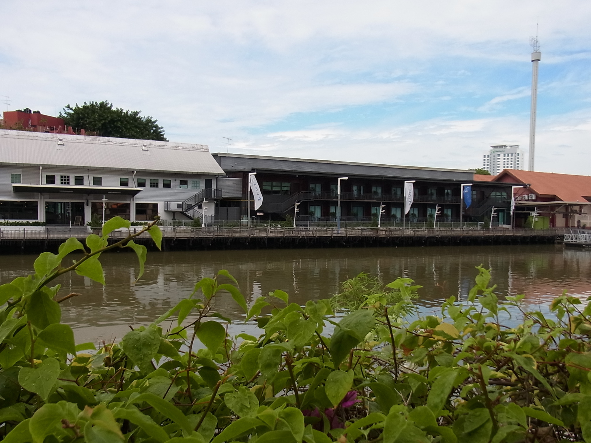 ひとつは3カ月前にオープンしたマラッカ川を隔て、カーサ・デル・リオの真正面に見えるQuayside Hotel。