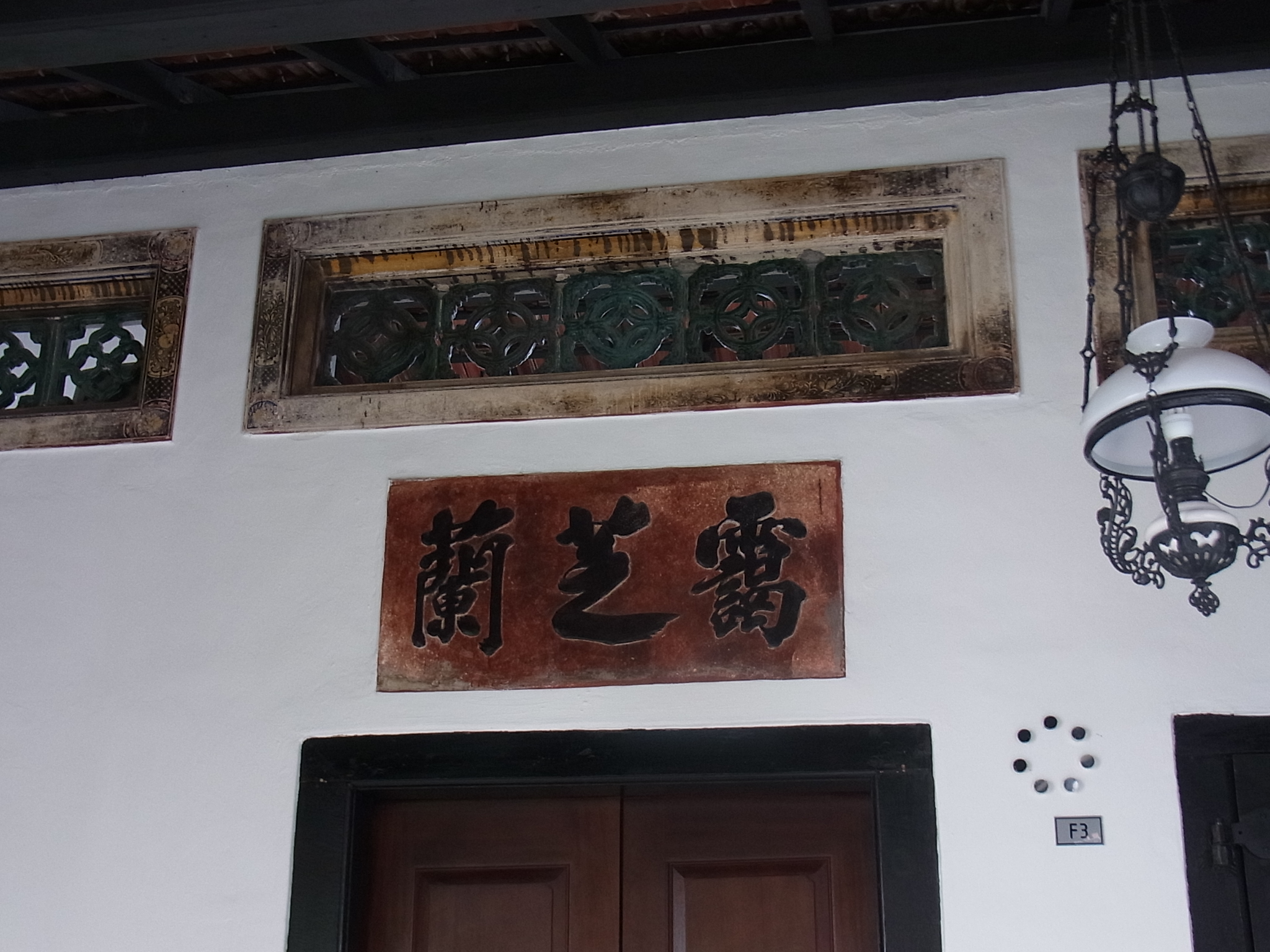 2階の中庭を隔てた正面F3という部屋です。扉の上の作りは昔のままです。