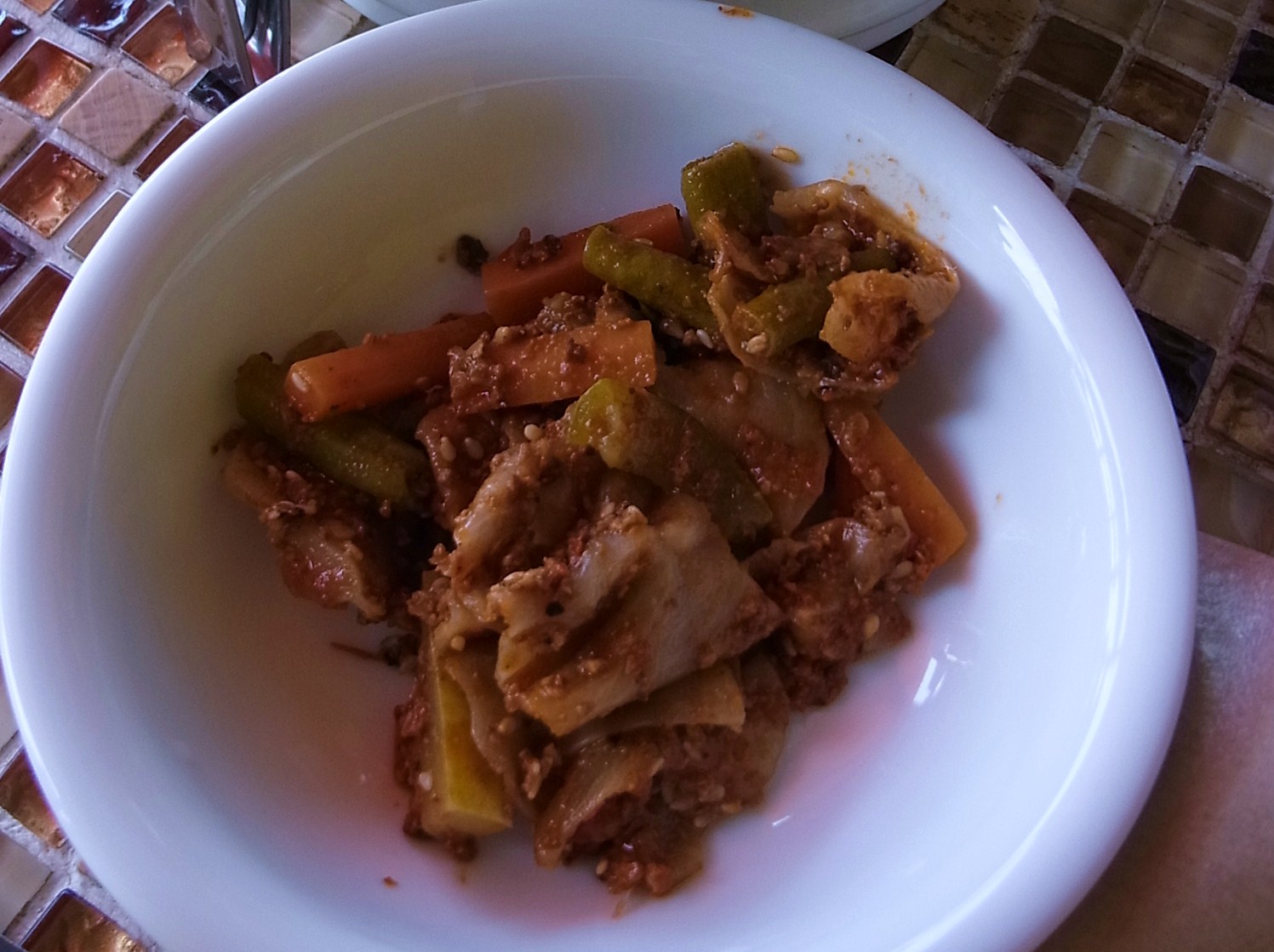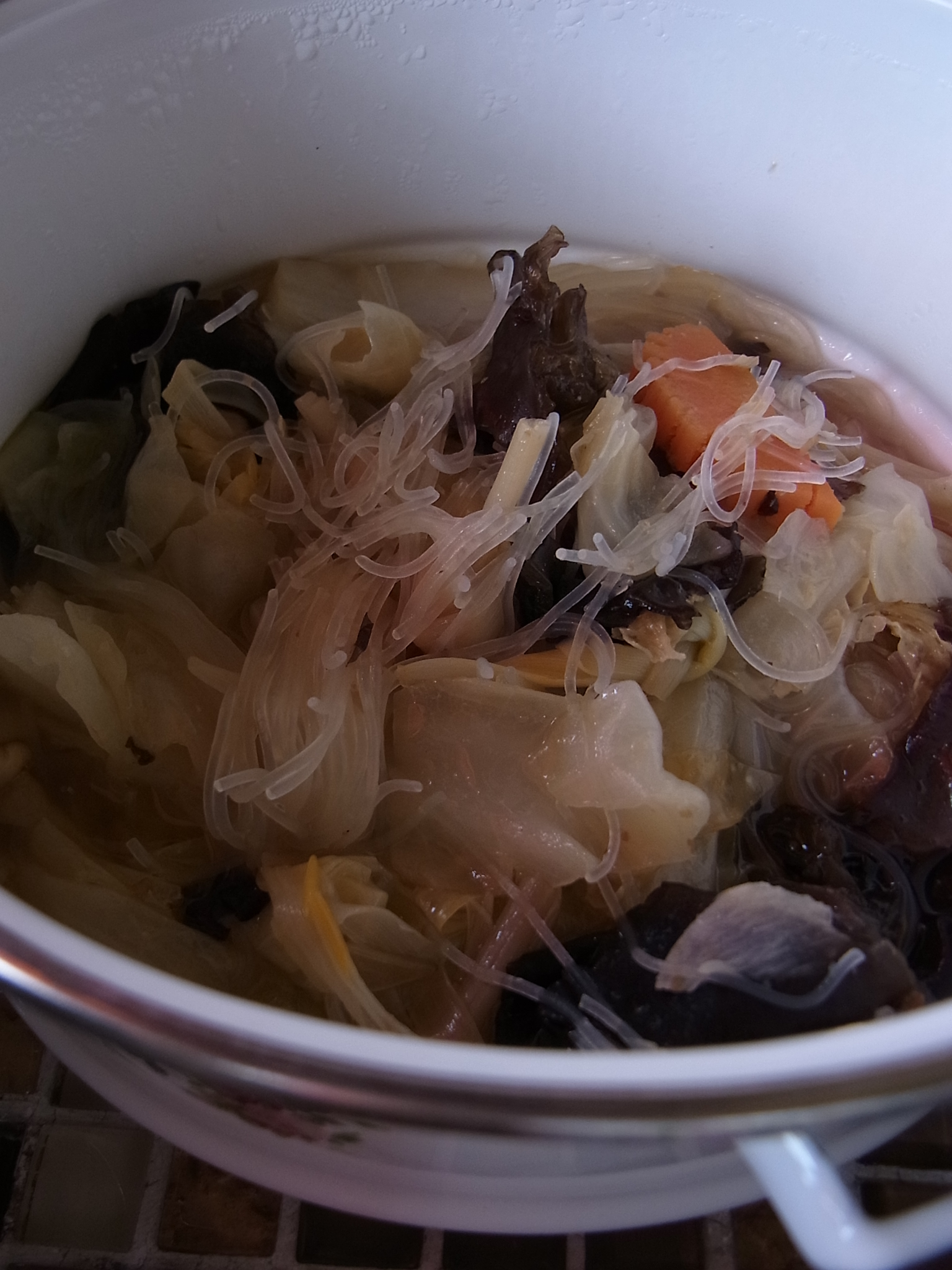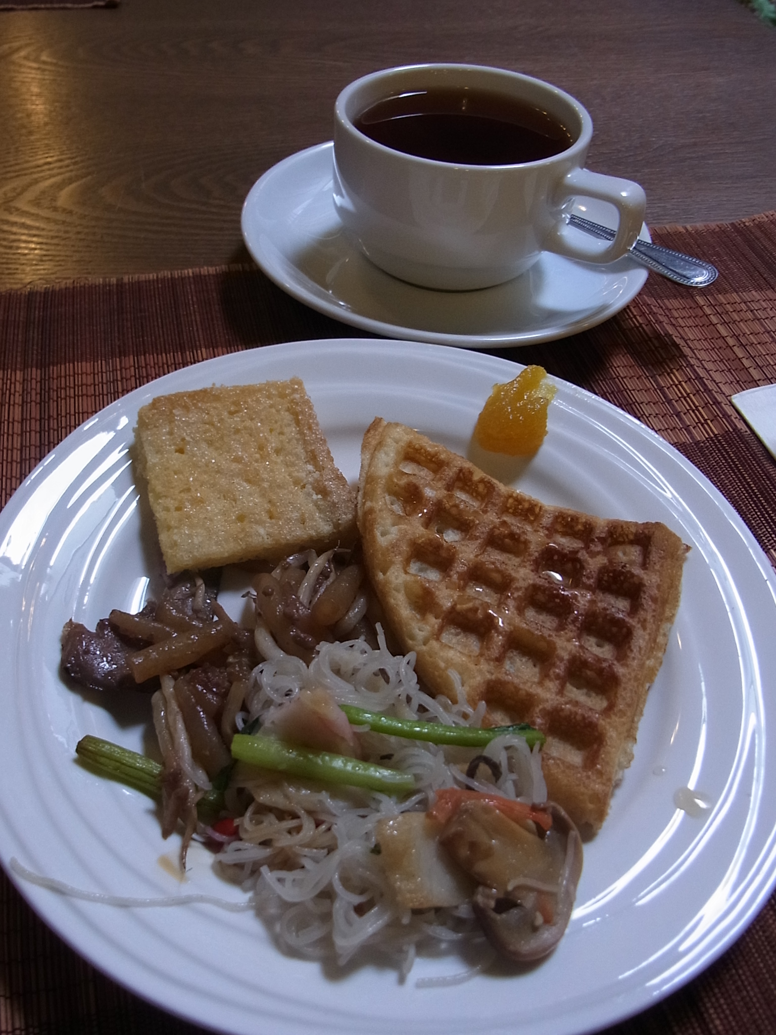 ニョニャ・チャプチャイはレストランで食べると野菜の具材が少なく、その分キャベツと春雨でかさを増している寂しい炒め煮が多いのですが、こちらは金針菜などもきちんと入り具材も豊富です。味の濃いメインディッシュに対し、やさしい味のチャプチャイは良い箸休めにもなりました。