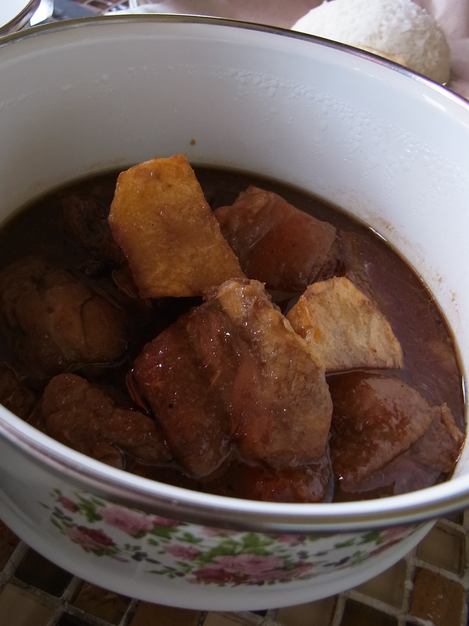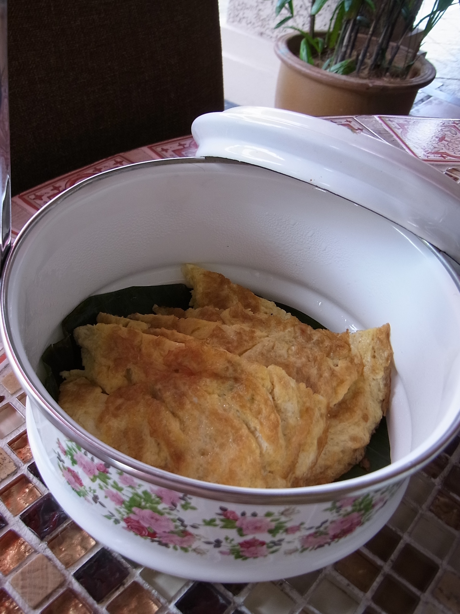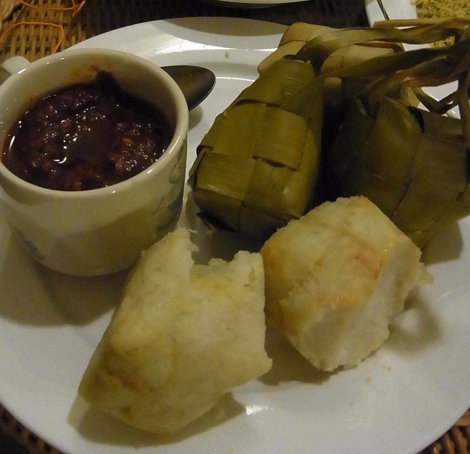 クトッパは冷凍品なども出回っていますが、それとは似て非なるもの。ふっくらとした米の食感はマレー風おむすびといった感じでした。彼曰く、これでもまだちゃっちゃと簡単に作ったものだから、本当に美味しいものを食べたければハリラヤまで居なさい、、、と言われましたが、叶わぬ夢。私たちにはこれでも充分すぎる美味しさでした。