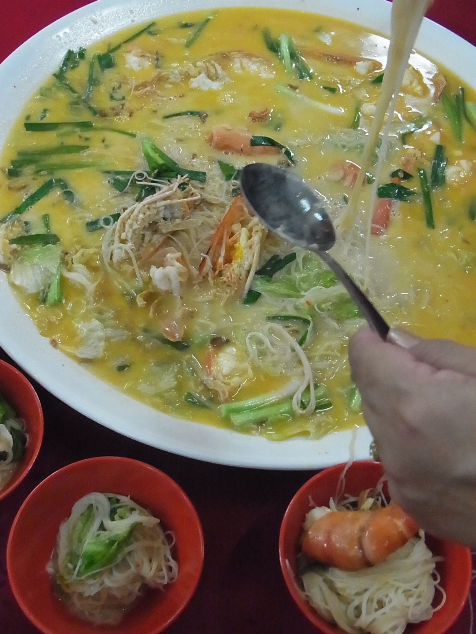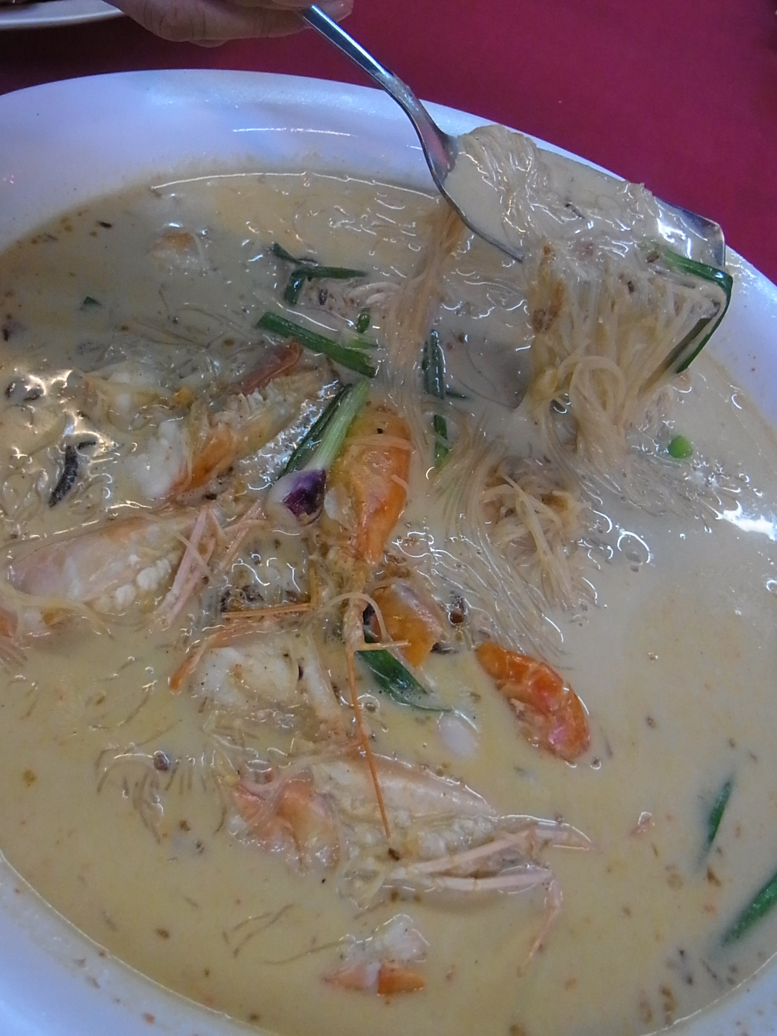 蝦の殻で取ったダシと鶏などのスープベースにチーズを溶かし、麺を煮込んだもののようで、ビーフンがチーズ味のスープをしっかり吸い込み幾分柔らか目の仕上がりになっています。マラッカですから、決して高級なチーズを使っているわけではないのですが、ネギがアクセントになっていて風味が良くツルツルといくらでも食べられてしまいました。
