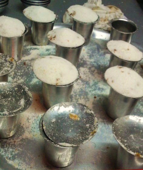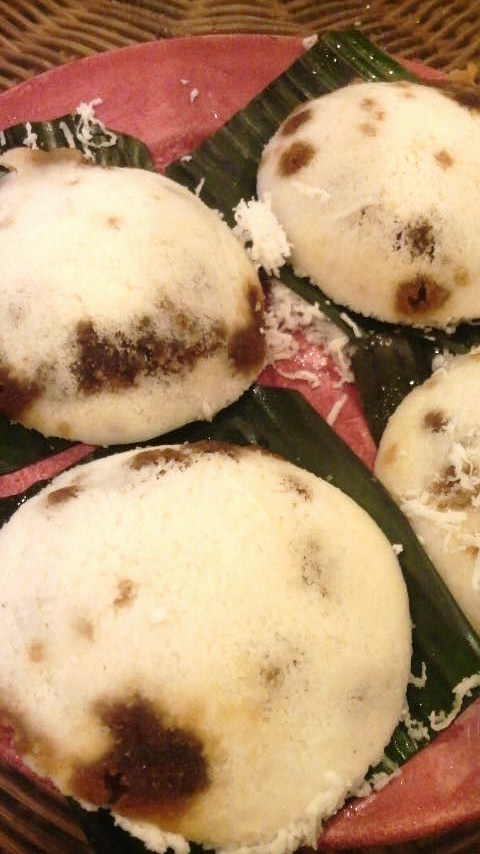 蒸したてプトゥ・ピリンの下には刻んだフレッシュ・ココナッツがたっぷり。