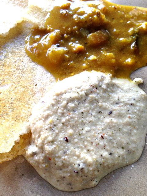 トセーは米粉を溶いて伸ばしたクレープのようなもの。パリパリ、サクサクの部分としっとりした部分、そして、ちょっとツブツブの残る食感が人気です。ただ、普通そこらの店で出すものは、添えるチャツネーやカリーがイマイチだったのです。しかし、この店のカリーはどれも美味。それに加えてココナッツ・チャツネーはもう極上のうまさ。チーズのようなコクがあり、スパイスとハーブが絶妙なコンビネーション。まさにDivine!!な旨さです。