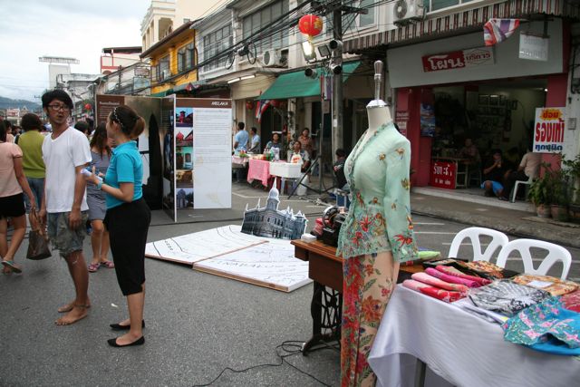 以前から親しくさせていただいているタイ・プラナカン協会も参加のナイト・ストリート・フェスティバルです。ニョニャ・クバヤの刺繍実演にはプラナカンの皆さんだけでなく、プーケット市長さん(下の写真中央の女性)も興味津々、市長さんは2度も見に来られたほどです。