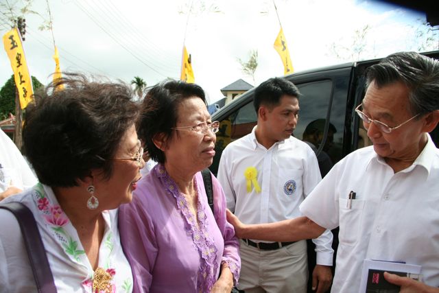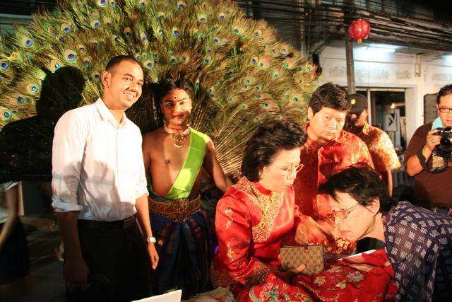 イベントが終わった翌日、ペナンのクーコンシーをモデルにした寺院をプーケットにも建てるということで、そのオープニングイベントに政府高官が来るので、是非紹介したいとほぼ無理矢理連れて行かれました。VIPがたくさん来るからクバヤで正装して来るようにと連れて行かれた先は、まだ工事中の土むきだしの場所。おまけに炎天下で、クバヤで正装していた私やキムさんはかなりへこたれました。それでも政府高官との記念撮影はプーケットの友人の絶妙な計らいで大成功。1台のリムジンが会場内に入って来たなあ、と思ったら、友人が私たちの腕をがっちり掴み、猛ダッシュ!紹介された方は、ハンサムだったタイの前首相のブレーンだそうです。プーケットの人たちはアンチ・タクシン派が多いので、前首相のサポーターが多いのです。