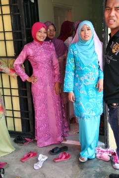 ショッピングセンターなどで目にする女性の衣装バジュ・クルンって、なかなか良いな、というのがないのですが、この家の女性たちはおしゃれ。カッティングもセクシーなのがあるのですね。KLまで行ってオーガンジーの生地を買い、お母さんと娘たちでお揃いにしたのだそうです。そして色は夫婦で揃えるというこだわりよう。