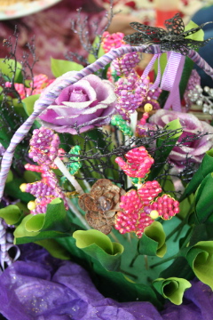 ハリラヤのオープンハウスということで伺ったら、なんとそこの家の娘さんの一人の婚約式が行われていました。マレー人の結婚式の習慣はプラナカンの結婚式にも多大な影響を与えていて、たとえば噛みタバコのシレーはマレー人の結婚式に欠かせないものだそうです。ただ、今ではシレーをたしなむ人がいないので、飾りに使われるだけとのこと。下記の写真はシレーで作ったブーケです。