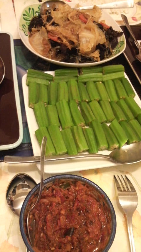 写真はサンバル・オクラやニョニャ風野菜炒めのチャプチャイ。シンプルそうに見えますが、自家製のサンバルソースが絶品です。さっと湯がいただけのオクラだからこそ、合わせるソースは丁寧に作られたもの。