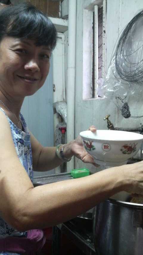 食べている間にお兄さん、弟さん、お姉さんとそれぞれが時間差で、まるでお茶漬けをすするようにヨンタオフーをご飯にかけ、さらさらと胃袋に流し込み、あっという間に仕事場に戻って行きます。
