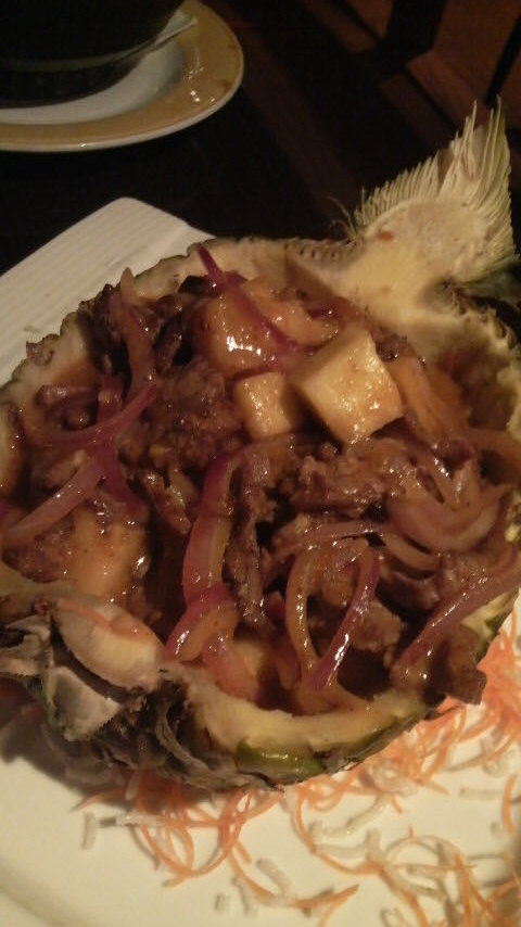 次はMasak Nanasというビーフとパイナップルのカリー煮込み。出てきたものはカリー風味の炒めもので、あれれ?でしたが、これもなかなかおいしい。あとはシンプルに空芯菜のサンバルブラチャン炒めを注文しました。シャキシャキのカンコンにしっかり絡んだサンバル、でも辛~い!これが食べられるニューヨーカーの舌はかなり進化?したなぁ~と改めて痛感。