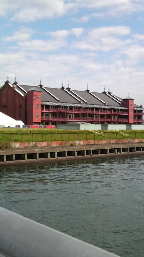 橋を渡って左側にはみなとみらいのビル群と大観覧車が。このあたりの港町横浜の風景はシンガポールととても良く似ていますね。