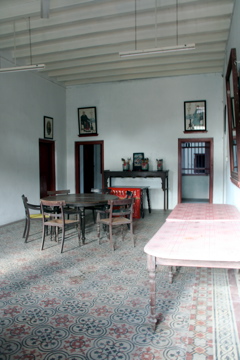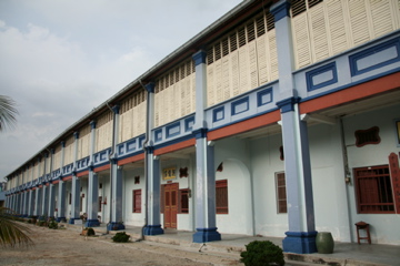この家はバターワースの南、車で30分ほどのところにあるスンガイ・バカップという小さな街にあります。ちいさなメインの通りがあって、この家はそこに面しているのですが、まずこの家の門があって、大きな広場があって、大きくて豪勢なアンセストラル・ホール(先祖を祀る廟)があります。そしてその裏の広大な敷地に「六軒家」と呼ばれるプラナカンハウスがずらーっと並んでいるのです。これは6人の息子たちが一緒に住むために建てられたもの。一軒一軒がとても大きいのに、これが6つ並んださまは圧巻です。その他に使用人の棟、倉庫などもあります。
