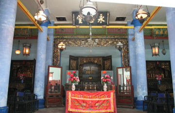 ところでなぜスンガイ・バカップの紫禁城などと呼ばれるかというと、ここのご先祖様はあの西太后に仕えた清朝の高官だったからです。このいきさつはまだ資料を読み込まないといけないのですが、マラヤへの移民が大金持ちになり、清朝の高官になるまで出世したのだからすごいですね。アンセストラル・ホールには西太后から贈られたというパネルなどが飾られています。なんでも「朝議第」という位にあったのだそうで、六軒家の各入り口にはこの文字が書かれています。