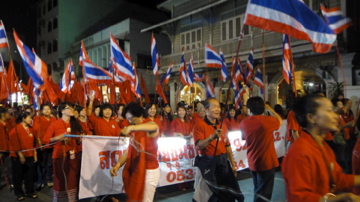 この写真は例の「赤シャツ隊」のパレードですが、この集団の向こう側にあるのはセラドンのティーハウスなのですが、この建物かっこよくありません?ショップハウスとも違うのですが、こんなの初めて見ました。今回時間がなくて建築物見学ができませんでしたが、チェンマイの建物も要チェックかも?