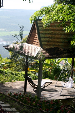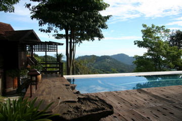 マリホムは1泊RM600以上というペナンではかなり高級な宿泊施設となります。環境は本当に素晴らしいです。下界では見たことのないカラフルな小鳩などもよく見ましたし、植物が見事なほど巨大に育っています。なんといっても素晴らしいのはバリク・プラウやバヤン・レパス、ペナンブリッジまで四方を見渡すことができるパノラマ。そんな山の上にロビンソン・クルーソーの話にでてきそうなコテージが9棟点在しているのです。