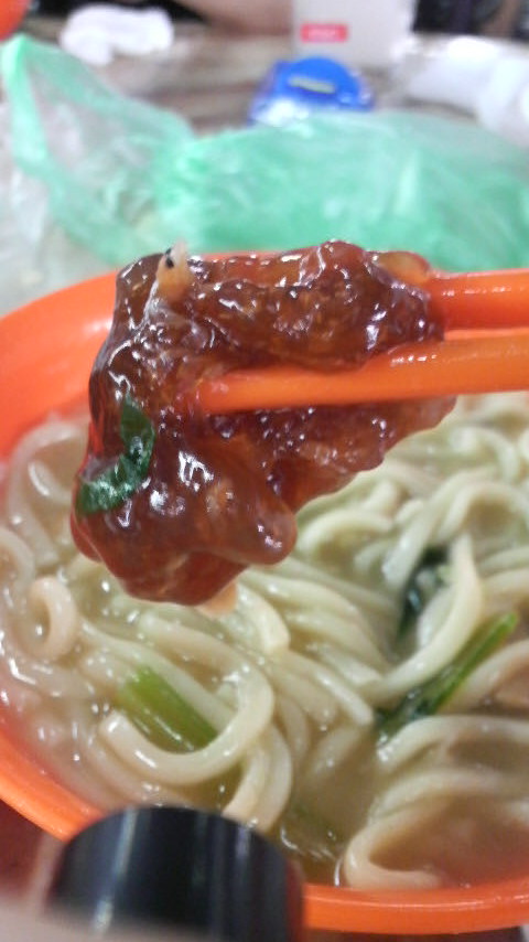 さて次は何とも不思議なレアものの麺「青麺」を紹介します。はっきり言ってこの麺は決して美味しいものではないのです。なぜ紹介するか?というと、はるか昔からペナンに伝わる福建人のお袋の味的存在の麺なのだよ、と地元の食通に教えてもらったからです。今、ペナンでこの麺を食べられるのはジャラン・ガドワラにある超ディープな「七條路南来ホーカーセンター」のみとのこと。味は、スープを吸い込んでプクプクにのびきった麺とでも言いましょうか、アルデンテ好きの日本人には受け入れがたい鍋底にこびりついた煮込みラーメン?といった感じなのですが、面白いのはスープが薄味だからか、醤油スープをタピオカで固めたものが中に入っています。さらに面白いのはよーく見るとタピオカの中に干しエビも入っているのです。