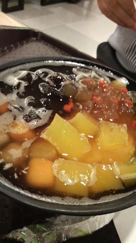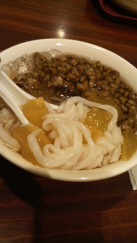 上2つの写真は近くのフードコートで食べたビータイバに緑豆とさつま芋のデンプンを固めたゼリー入りのスイーツ、芋団子やタピオカや愛玉ゼリーなどQQをたっぷりトッピングした冷たいデザートです。氷砂糖のまろやかな甘みが身体に優しい味でした。