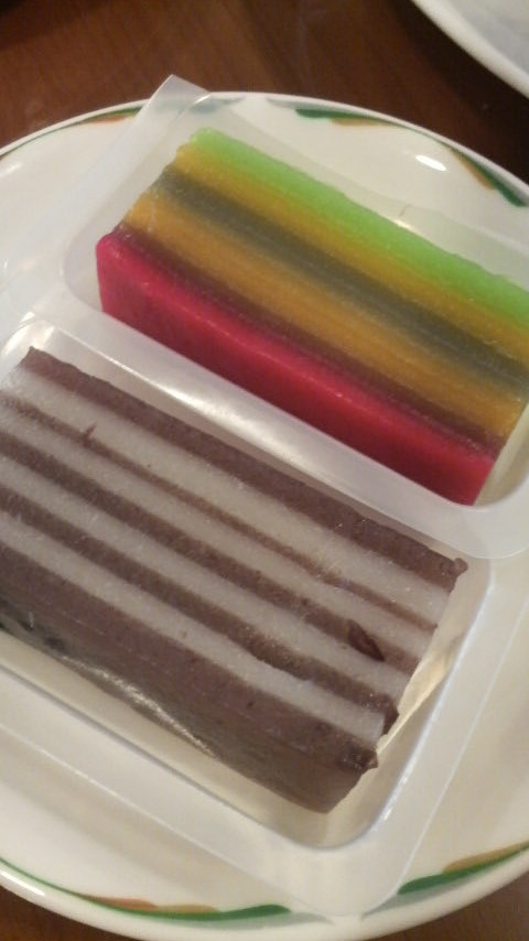 種類は三種類、レインボーカラーのクエ・ラピスはシンガポールを思い出させるもの。(マラッカのクエ・ラピスは伝統的な赤白のレイヤー)。焦げ茶色と白のものはアズキ味で、和菓子としか思えない風味と食べやすさ。写真には撮りませんでしたが、緑と白もありました。これはグリーンティー・フレイバーのようなクエ・ラピス。どれも本場で食べるよりココナッツ・ミルクの脂っこさが無く、さっぱりと食べやすい味でした。なぜ台北でクエラピスが?と最後まで不思議に思いましたが、もしかしてこれはマレー風と言うよりも、福建地方のクエ(九層糕)のモダン・バージョンかな?と勝手に想像しつつ、でも台北でクエ・ラピスに出会えるとは、感激でした。