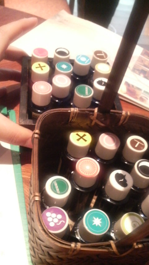 まず興味深かったのは、トリートメント中に焚くアロマ・オイルと、実際のマッサージに使うアロマ・オイルの2種類を、それぞれ12種類もある中から自分の好きな香りを選ぶことです。ご覧のとおり沢山あるのでなかなか大変なのですが、これが楽しく、まるで調香師にでもなったかのように、鼻をクンクンに近づけては、お気に入りをチョイスしてゆきます。一気に20種類以上の香りを聞くのですから時間がかかりそうに思いますが、苦手な香りと好きな香りが案外迷わず判別できてしまうのが面白いところ。最後には好きな香りを2種類くらいずつ残し、エステティシャンにどちらを選ぼうか?と聞くと、自分が選んだオイルの効能を見せてくれました。すると、身体の弱いところや今欲しているものが、選んだオイルとドンピシャリ一致しているのです。これには最初から感激。使うプロダクツはオーストラリアやドイツのオーガニック製品が中心で購入可能です。