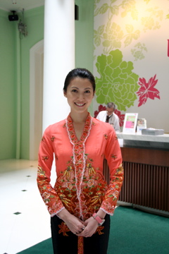ほとんどスッピンに近い感じで、とってもカジュアルな服装での出で立ちでしたが、クバヤを着せ写真を撮ると、ほれ、このとおり、フォト・ジェニック!