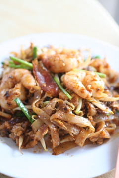 米の粉でできたちょっと幅広麺をエビ、もやし、ラプチョン(腸詰め)などと一緒にちょっぴりスパイシーに炒め上げたペナンの名物料理です。