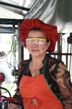 オバちゃんは強烈な入れ墨眉毛と赤い布袋さんみたいな帽子がトレードマーク。いけばすぐにわかります。