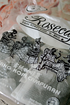 Aik Cheongの店からチェンフンテン寺へ行く道には何軒もよろず屋さんや、乾物店、ココナッツを売る古い店が並んでいます。そのうちのよろず屋さんなどでもいろんなコーヒーパウダーが売られています。Aik Cheongのファミリーの嫁が離婚して自分で立ち上げたというコーヒーブランド、ローズカフェのパウダーもありました。絵柄がかわいくて素朴ですね。乾物屋のおじさんに、「ローズカフェの方が美味しいよ」と言われて買ってみましたが、さて・・・?