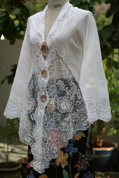 お母さんのキムさんは、仕事一筋の職人さん。一日3時間睡眠も珍しくなく、寝ても覚めてもクバヤのことばかり。私たちが先月ペナンに到着した日、キムさんは私たちをもてなしてくれたあと、できたクバヤをクアラルンプールのお客さんにどうしても手渡ししたいと深夜バスでクアラルンプールへ向かいました。なんとその翌日の昼にはペナンに戻って来て、「ああ、お腹すいた」と言って、私たちをディナーに連れてってくれたのです。いつ寝たんだ?75歳の高齢のおばあさんが、ですよ?? 家族の人たちが「DHLで届けてもらったらいいでしょ?」といくらいっても聞かない。「私はそういう今風なやり方は嫌い」といって、意地でも遠路かまわず出かけて行くのです。