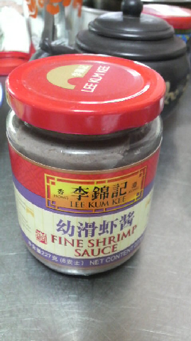 ハーチョン(蝦醤)とは、小エビを発酵させてどろりとしたペースト状のソースにした香りと塩気の強い醤で、グレーがかった鈍い茶色をしています。先日ラクサに添えた真っ黒で甘味のあるプローン・ペーストとは違い、日本で手に入りやすいものは李錦記で出しているシュリンプ・ソース。日本語表記は「えびみそ」として出ているようです。(日本の甘いえびみそと勘違いしてしまいそうですが、違います。)
