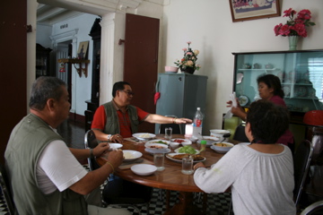 写真上)お父上がプーケット市長だった名家タン一族のお屋敷でランチによばれ。