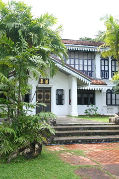 もちろんちゃんと見所もあります。タランロードをMontri Rdの方へ歩いていくと左手に観光局本部があり、ここにいくと山ほど地図や資料が用意されています。特にタウンの歴史的街並について案内しているPhuket Town Treasure Mapという地図を入手すれば、名跡がどこにあるかすぐわかります。旧タイホワ小学校を利用した博物館や、とくにババのお屋敷を公開しているチンプラチャー・ハウスは一見の価値があります。チンプラチャー・ハウスの隣には同じタン一族が所有するチンプラチャー・マンションがあります。現在は賃貸に出しているそうで(しかもそのテナントが留守中とあり)、一族の方と一緒でも中に入るのはかないませんでした。
