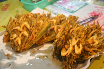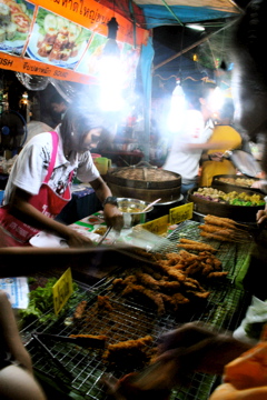 ラノーン通りには市場がありますが、現在改築中。通りの向かい側に移転しています。鶏の唐揚げなどを売る屋台を通り過ぎてずんずんいくと左手に市場が現れます。この市場は夜もやっていて、なかなか面白いですよ。
