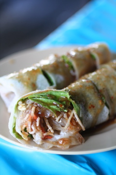 ポピアはマレーシアやシンガポールで食べるのとまったく同じ福建式生春巻きです。違いはほとんどありませんが、プーケットは甘いタレを中に入れるだけでなく、上からもたっぷり。ちょっと甘過ぎます。でもここは休みなく注文が入ってました。