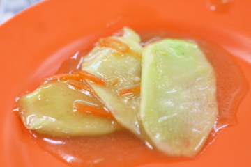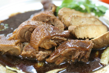 潮州料理はフカヒレやアワビ、ナマコなどの高級食材を料理するのが得意です。お金に余裕のある方はこういうものを頼んでも良いでしょう。子豚の丸焼きを食べているテーブルもありました。ほかに潮州名物というとマナガツオの蒸し物。梅干しとキャムチャイという酸味のある漬け物でさっぱりと蒸し上げるので、魚の鮮度が命です。