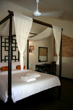 しかも嬉しいことに、一番大きなこの部屋でも一泊575リンギット(税・サービス料全て込み、2人分の朝食付き)、日本円にして約19000円弱で泊まれるというお値段です。もちろんマラッカ価格としては高い値段ですが、これだけの広さと快適さでショップハウスの気分を味わえるなら、他国のホテルと比べて決して高いとは思えません。