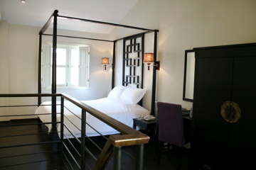 大きな窓から降り注ぐ光が2階のベットルームまで明るく照らしてくれます。ホテルというより、お洒落な家に招かれたような開放的な気分にひたれます。入り組んだ造りが多いチャイナタウンの宿の中で、重厚な家並みが見渡せる部屋はまさに特等席。
