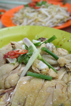 せっかくですから、イポーのもうひとつの名物、「アヤム・タオゲイ」を紹介しましょう。アヤムは鶏、タオゲイとはもやしのことです。水のおいしいイポーでは、ぷくぷくに太ったモヤシが栽培されており、それをさっと湯がいたものが名物なんです。