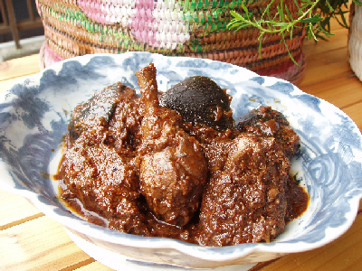見かけは真っ黒けで少々グロテスクですが、味は天下一品!フレンチのソースに勝るとも劣らない深い味わい。こういう料理を創り出したプラナカンの人々の肥えた舌のセンスと、好奇心をも感じさせる料理です。